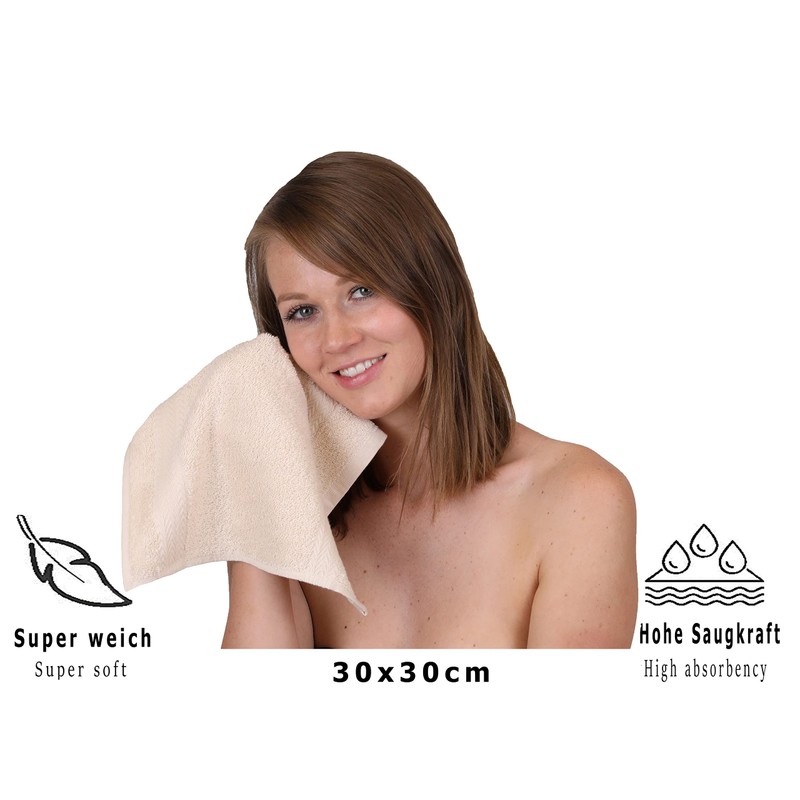 - The premium flannel, size 30 x 30 cm, offers maximum comfort thanks to its special terry towelling fabric.