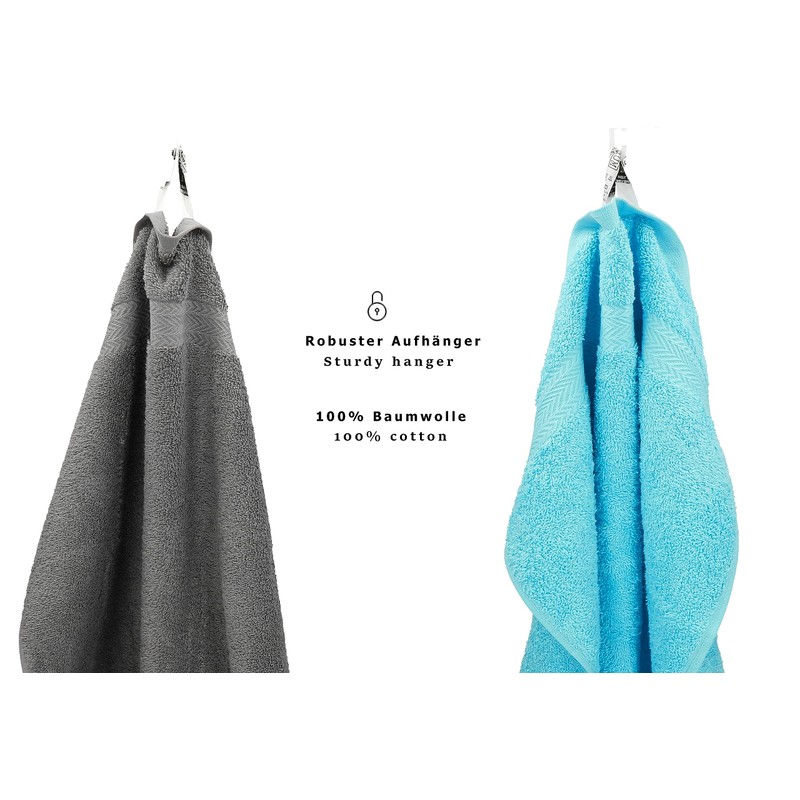 - Timeless design: the different coloured terry towels come in a simple design and therefore fit in any guest bathroom. Timeless colours with high-quality appearance