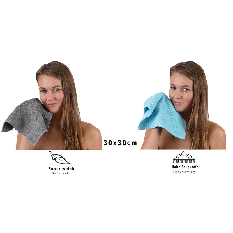 Betz Premium Flannels 100% Cotton 30 x 30 cm Anthracite and Turquoise Pack of 10