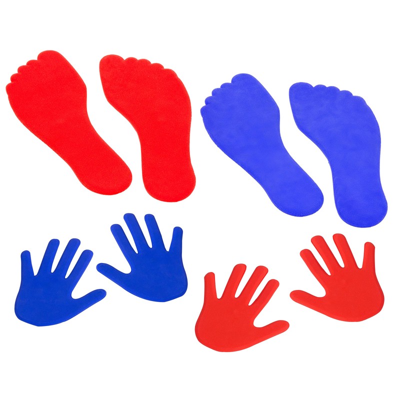 - You will receive: this set contains 8 markings in the form of 4 hands and 4 feet, one half red and the other blue.