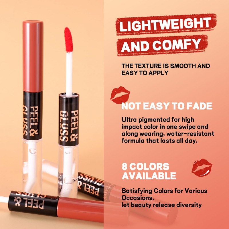 - Smudge-Proof & Waterproof: This lip gloss contains a nourishing base that moisturizes while coloring, preventing lips from drying out or cracking. Eight color options to meet your different needs, and this double-ended tear-off lipstick is very waterproof, so your lips always remain flawless regardless of the sun or rain, perfect for a busy lifestyle or special occasions.