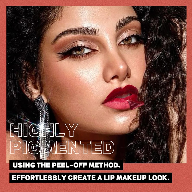 - Bold enough: Zero compromise, highly pigmented, one-stroke application, vivid opaque color in seconds, very easy to peel, perfectly adhere to lips after peeling, create a flawless airbrushed effect, highly concentrated formula, smooth application, 24-hour long-lasting makeup effect, no need to touch up makeup repeatedly! Innovative peel-off technology creates a lightweight, smudge-proof film that keeps makeup long-lasting whether dining, drinking or going out for adventures.