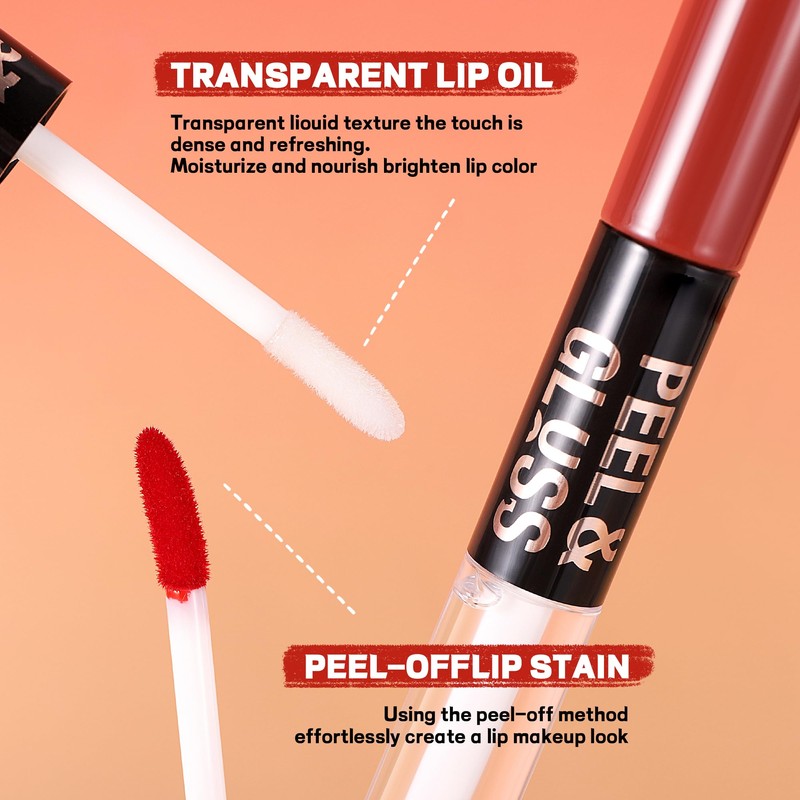 BEUKING Double Head Peel Off Lipstick & Moisturizing Lip Oil, Matte + Mirror Lip Tint Waterproof Highly Pigmented Smooth Lip Gloss Long Lasting Lip Stain for Daily Makeup (#02 Romance Kit, 0.7 OZ)
