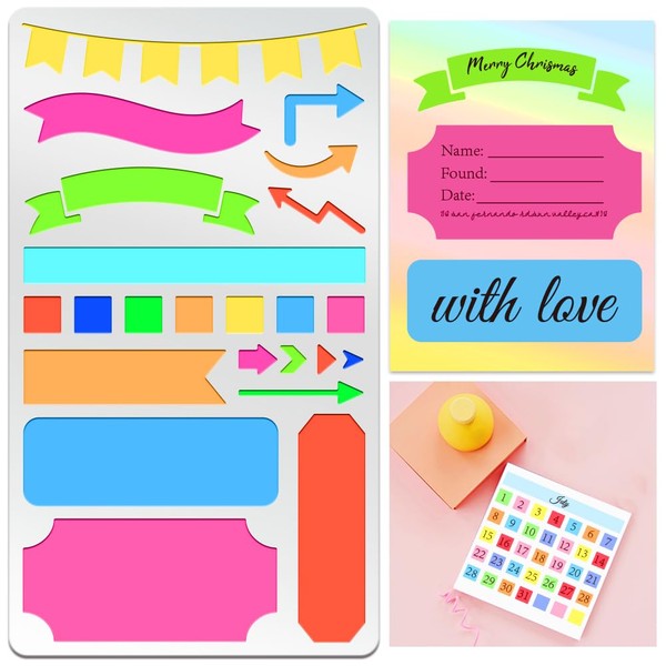 - DESIGN OF PATTERNS: Metal Stencils are mainly useful for you to draw banners, tags, and circles with curved edges as the stencil contains banner, tags, bookmark, planner, frame and other patterns which can meet your different needs.