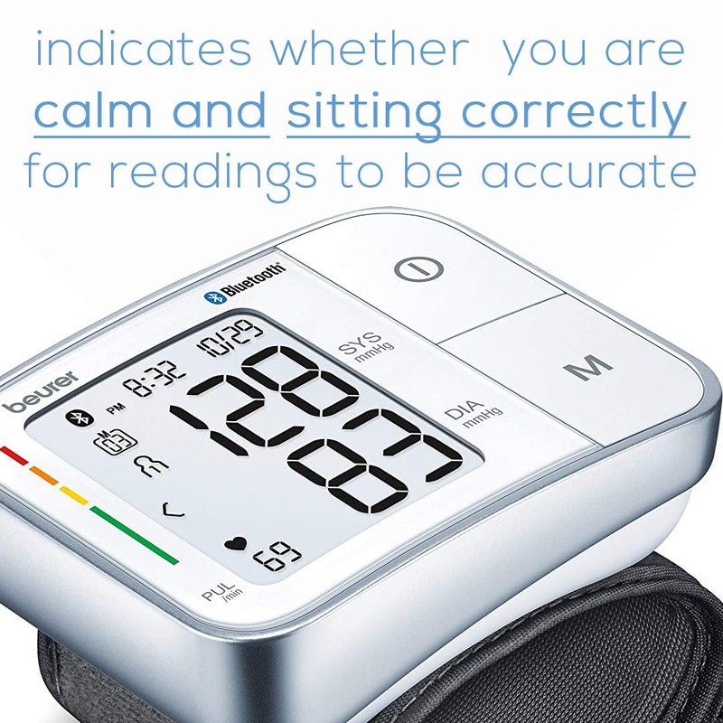 Beurer Bluetooth Smart, Wireless & Automatic Wrist Blood Pressure Monitor with Large LCD Display, Irregular Heartbeat Detection, Multi-Users, Syncs Readings to HealthCoach App, 60 Memory Spaces, BC57