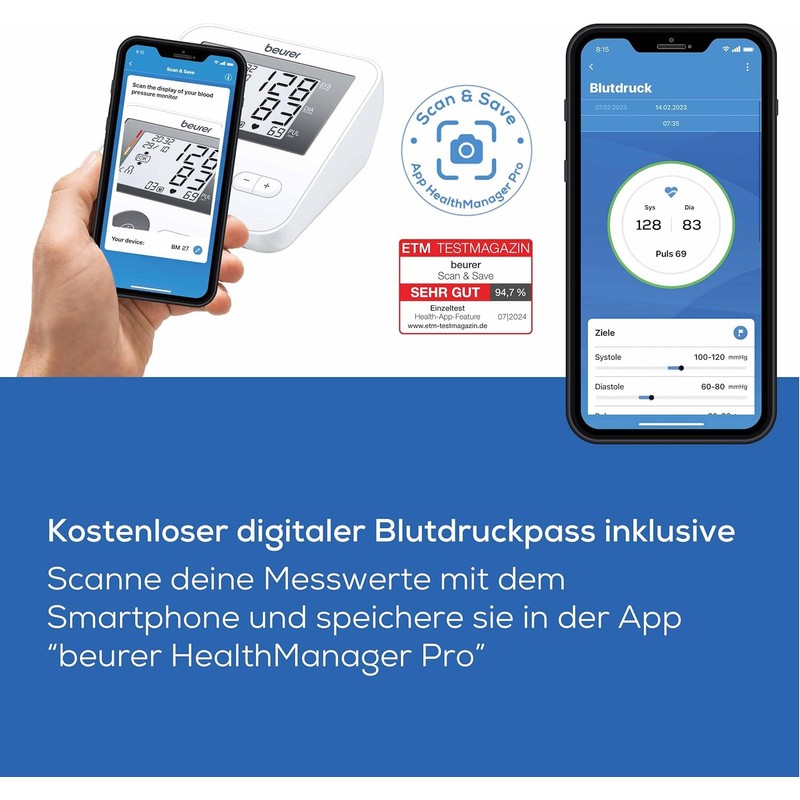 Beurer BM 27 upper arm blood pressure monitor: so you have your vital values constantly in view.