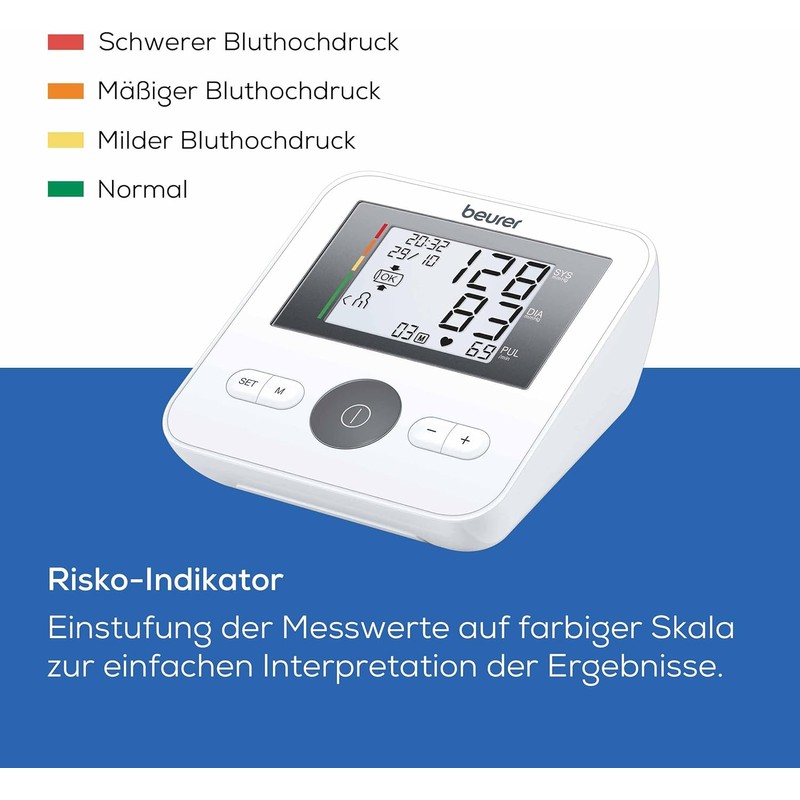 Beurer BM Upper Arm Blood Pressure Monitor – Automatic Digital Monitor with Risk Indicator, Arrhythmia Detection & Application Error Alert – Accurate Home Blood Pressure Measurement with Easy-to-Read Display