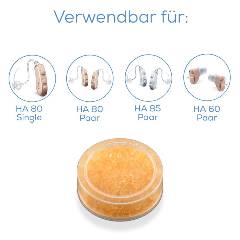 - Care for your hearing aids: the drying capsule can be used for the Beurer HA 60 pairs, HA 80 single, HA 80 pairs and HA 85 pairs of hearing aids