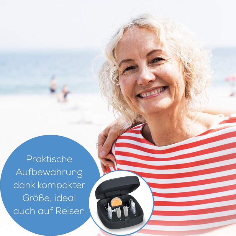 - Drying the hearing aids: after use, place the hearing amplifiers in the storage box with the drying capsule and close the lid, so that possible moisture residue is removed