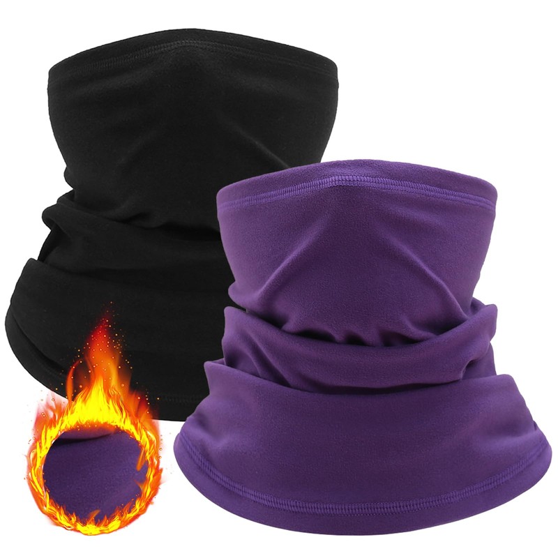 Beurlike 2 PCS Winter Neck Warmer Fleece Neck Gaiter Warm Balaclava Windproof Face Scarf Cover for Men & Women Outdoor Sports(Black+Purple)