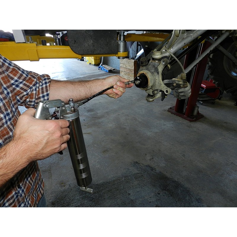 Finally! The bearing greasing tool you've been waiting for. This allows you to grease the wheel bearings without having to remove the axle or suspension parts. Remove the wheel, brake caliper, and hub, insert tool over the axle into the bearing and apply grease effortlessly!