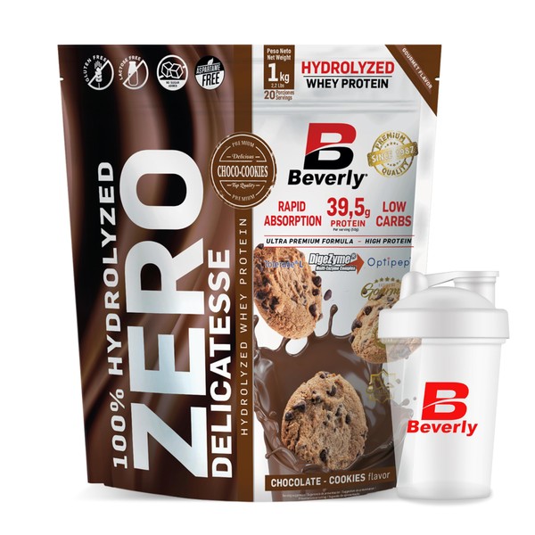 Beverly ZERO DELICATESSE | Hydrolysed Whey Protein 80% | 1 Kg | Schokoladenkekse | 1 Monat kostenloser Shaker.
