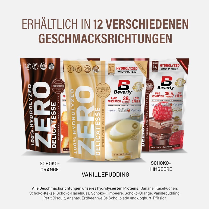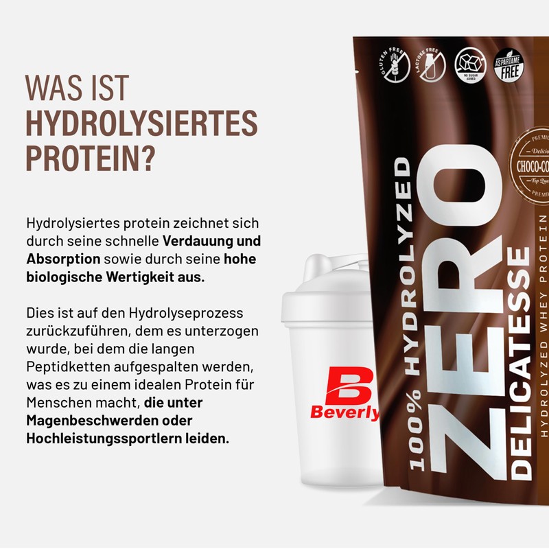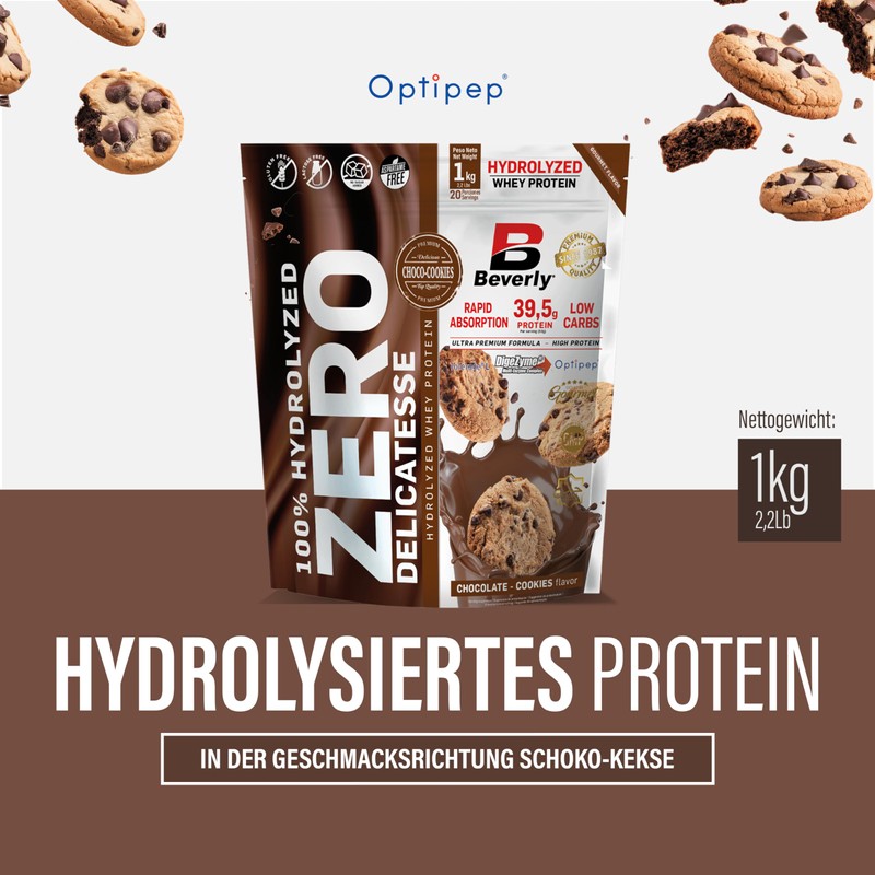 Beverly ZERO DELICATESSE | Hydrolysed Whey Protein 80% | 1 Kg | Schokoladenkekse | 1 Monat kostenloser Shaker.