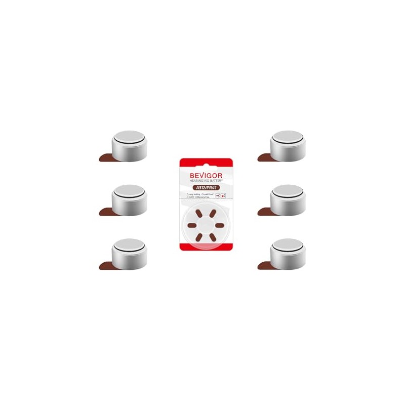BEVIGOR Hearing Aid Batteries Size 312, Mercury Free, Easy to Open and Carry, 1.4V, Long Lasting Batteries (6 Count)