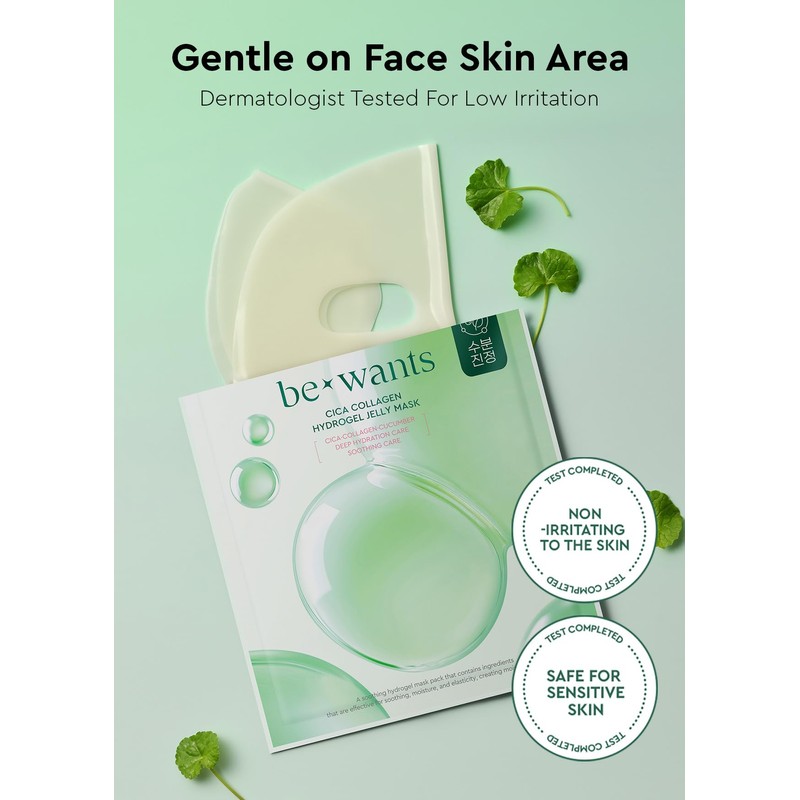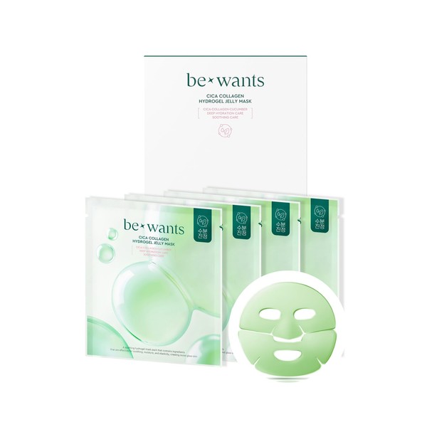 Bewants Cica Collagen Hydrogel Jelly Mask with Centella Asiatica, Aloe Vera, Cucumber Extract – Moisturizing Face Sheet for Soothing, Firming, and Radiance (4 Packs)