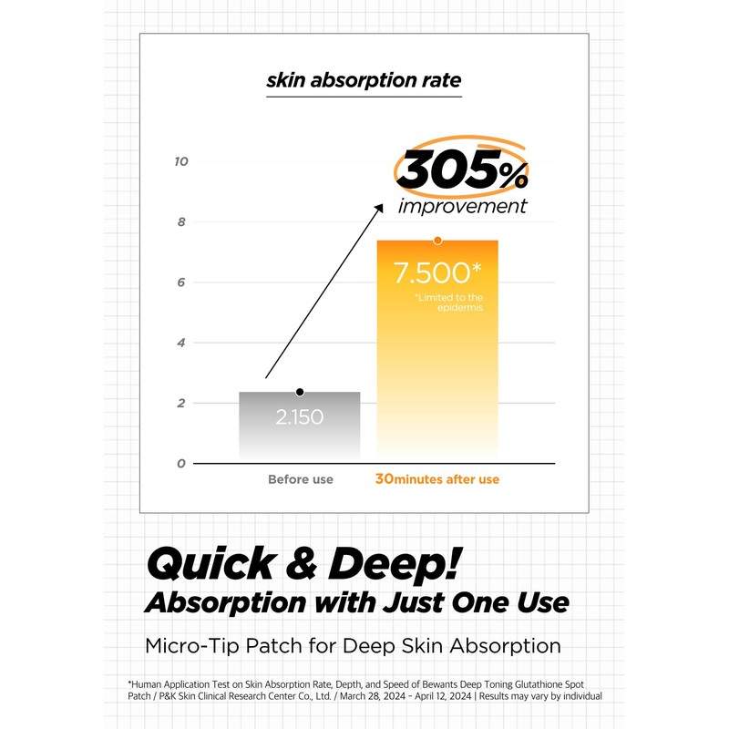 - Effective Skin Enhancement: Bewants Deep Toning Glutathione Dark Spot Patch utilizes advanced micro tip technology to penetrate deeply, enhancing skin elasticity, texture, and tone while reducing blemishes and pigmentation.
