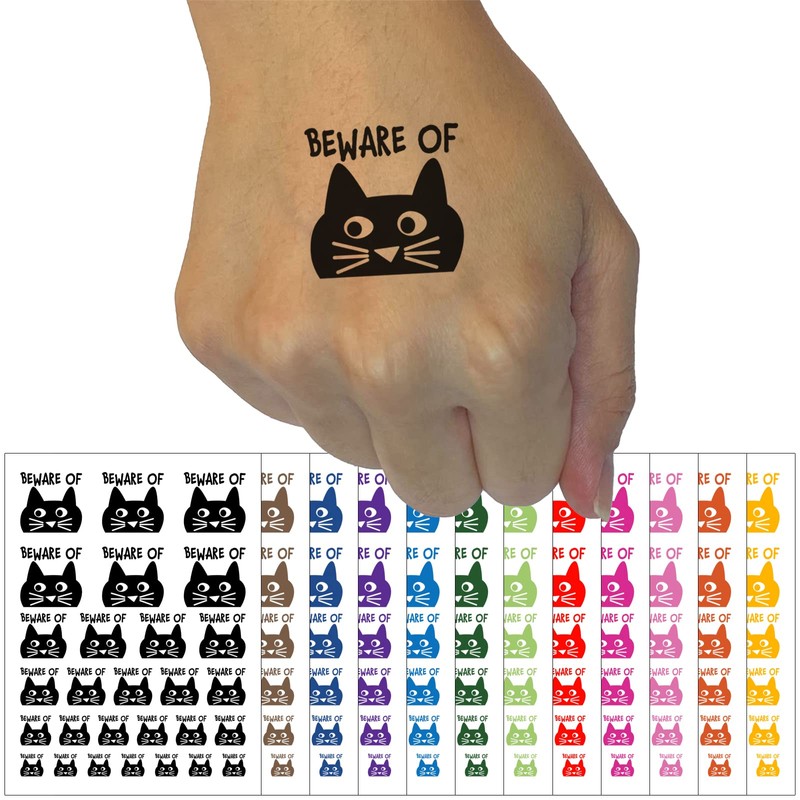 Beware of Cat Funny Doodle Temporary Tattoo Water Resistant Fake Body Art Set Collection - Light Pink (One Sheet)