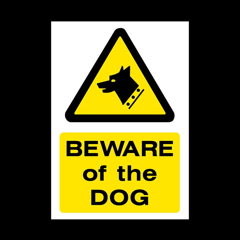 Beware of the dog Plastic Sign with double sided fixing tape - Fouling/Dog Area/Clean it up/Security Guard Dogs (MISC60)