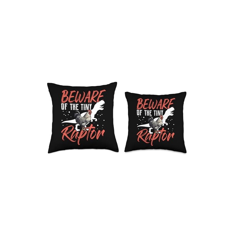 Beware Of The Tiny Raptor Chicken Shirt Dinosaur T-Rex Throw Pillow