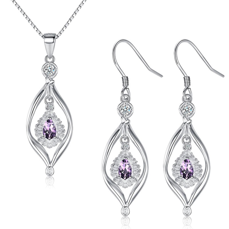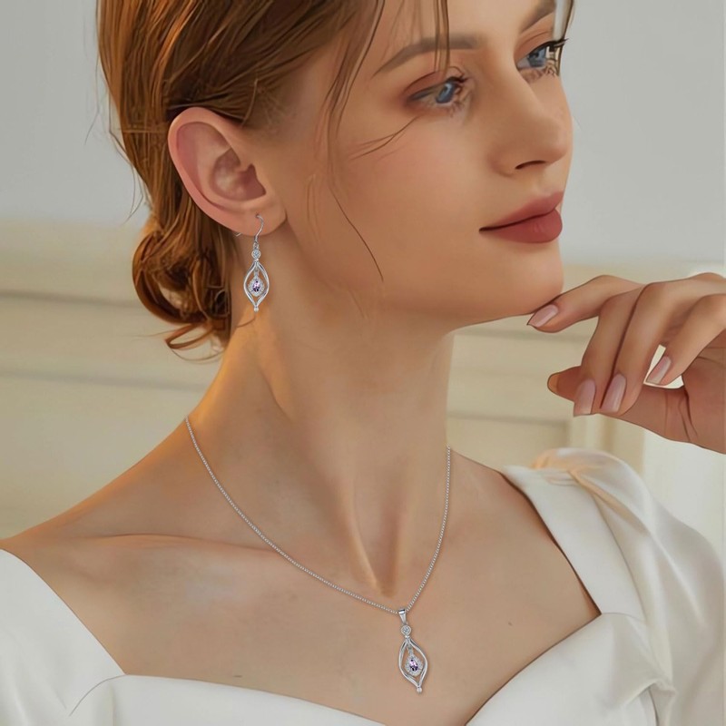 - 💜【High Quality Material】🙎: Our Silver Twist Jewellery Set is made of 925 sterling silver + Purple Cubic Zircon. Nickel free, hypoallergenic and comfortable to wear. The surface is plated in high quality silver plating, which means the Pendant Necklace & Dangle Earrings Set will not easily tarnish or oxidise. Cubic zirconia adopts claw inlay, which is very sturdy, so there is no need to worry about falling. They also have excellent luster and look sparkling.