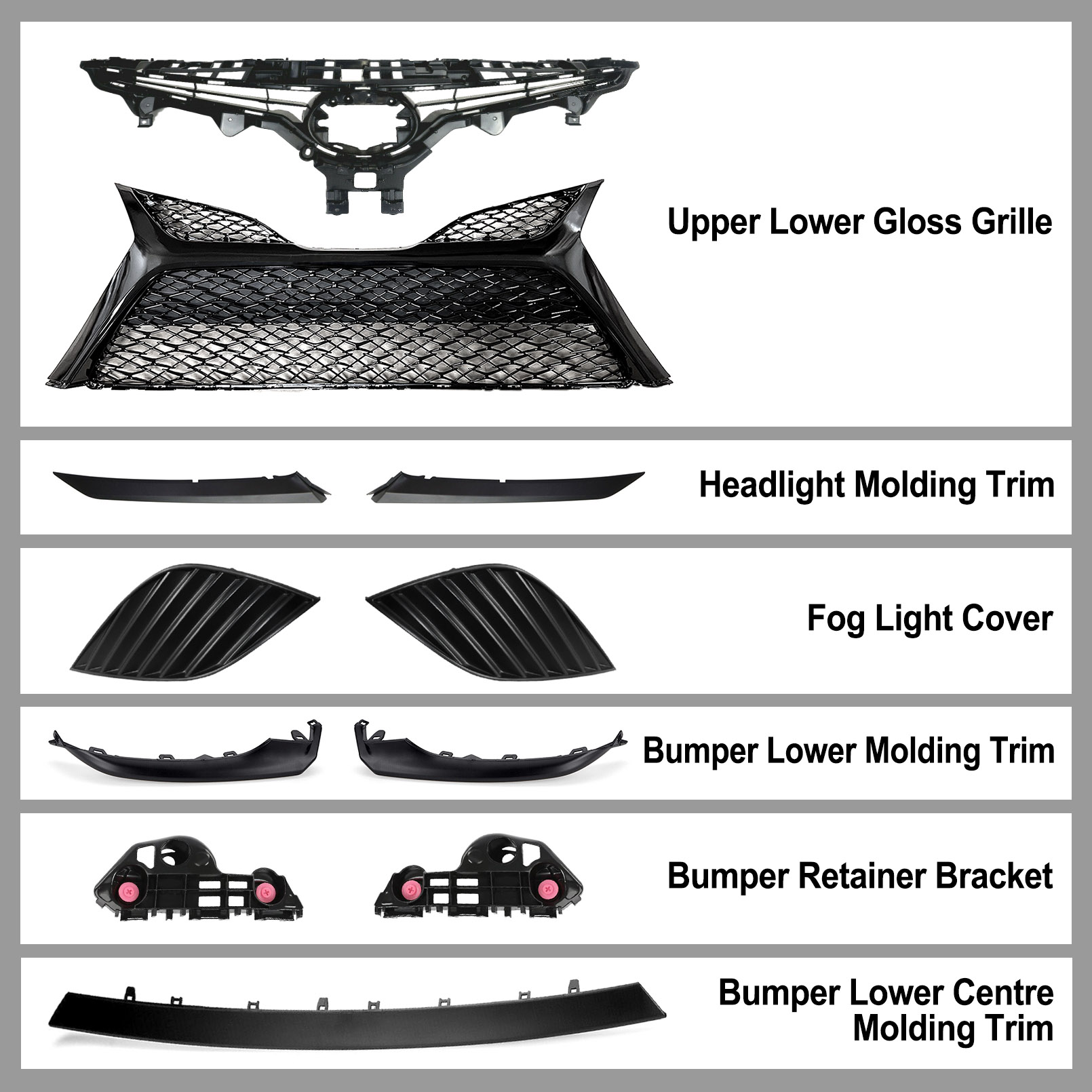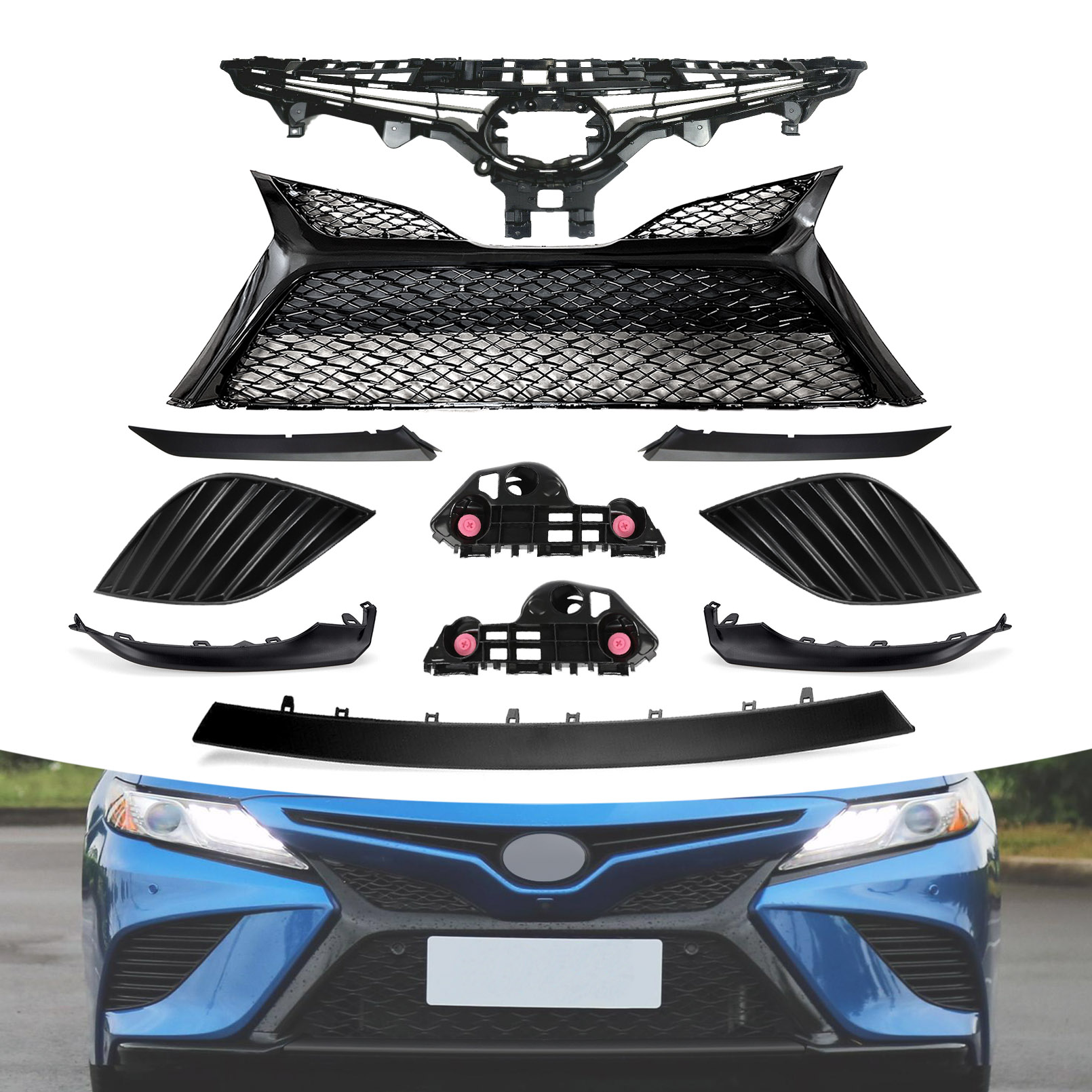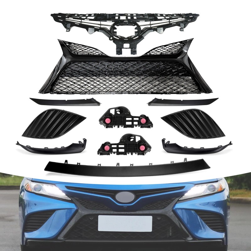 Bewild 11PC For Camry SE 2018-2020 Front Gloss Black Grille Bumper Headlight Lower trim