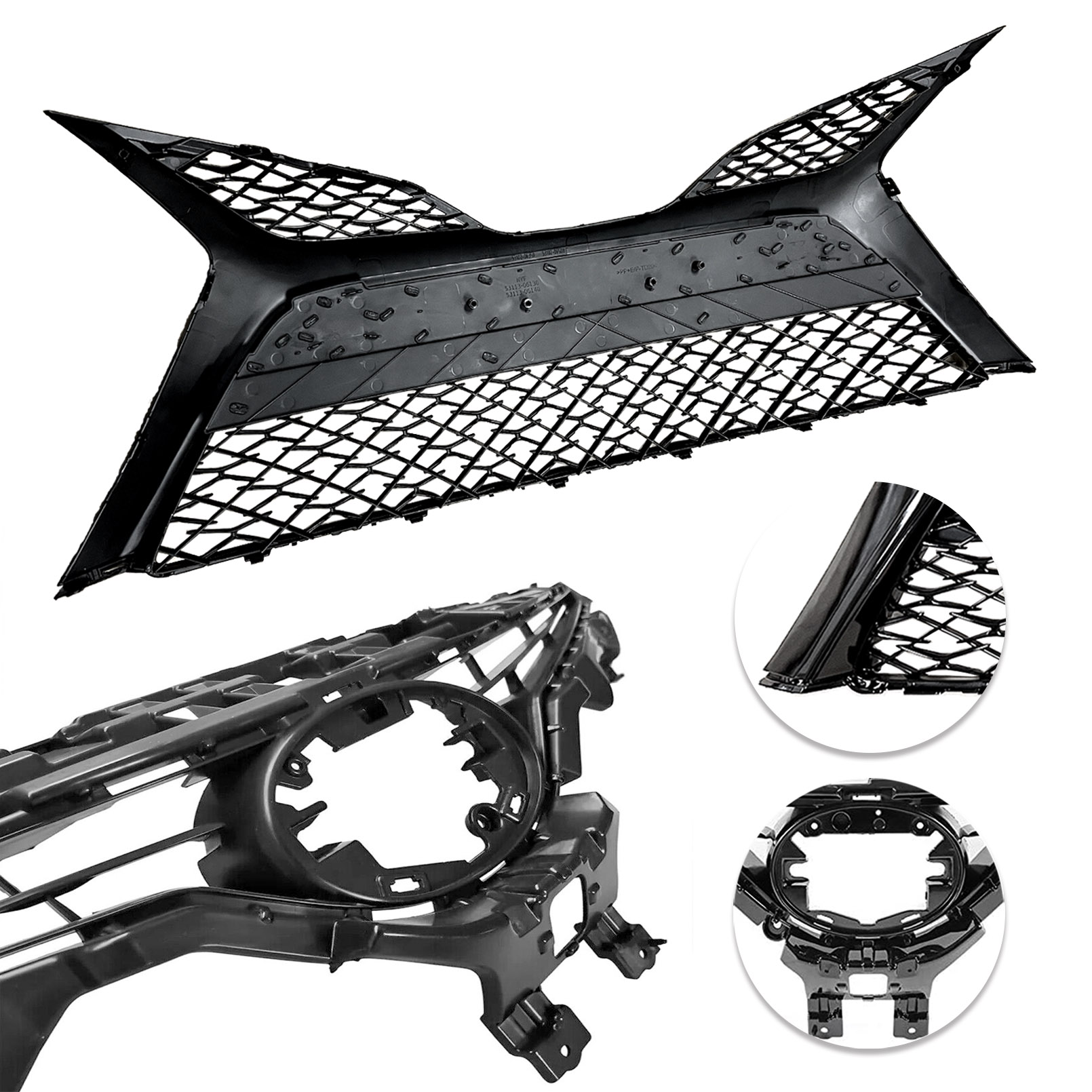 - Component 1: Front Bumper Radiator Upper Lower Black Grille Grill Mesh