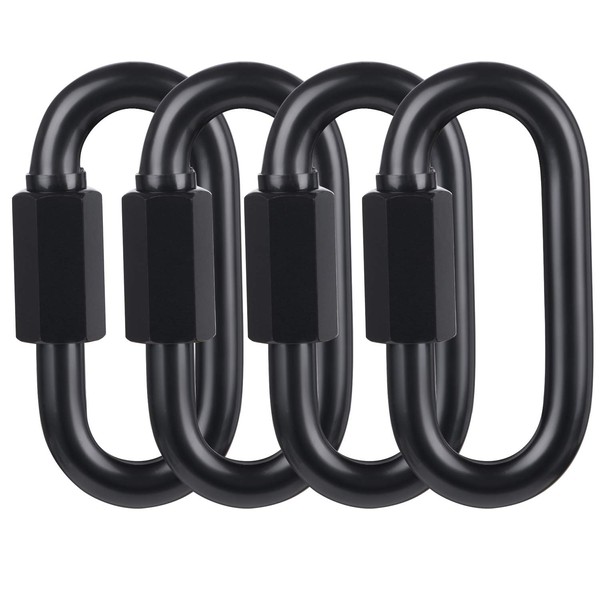 BEWISHOME D Shape Locking Carabiner,Black Quick Links,Durable Chain Links,Heavy Duty Chain Connector,Black M8 HDK03H