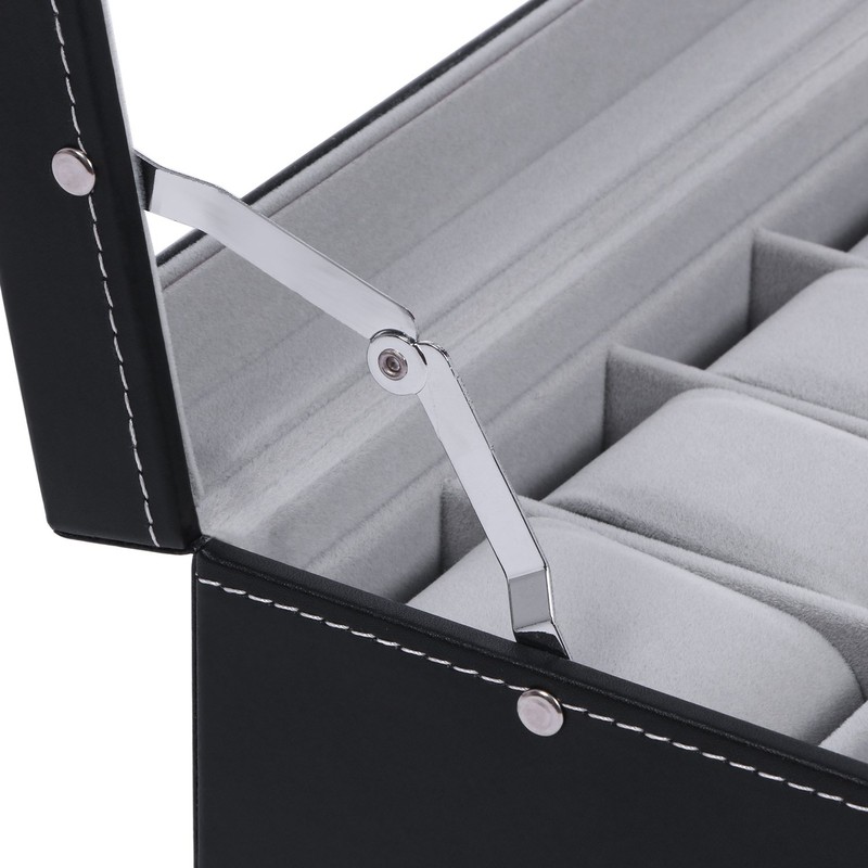- TOP-NOTCH QUALITY & FANTASTIC LOOK: Made from good quality black PU leather cover, well-done seams, refined interior, smooth actual hinge, see-through real glass top, this well-built watch box is sturdy as well as elegant. Your beloved must be very happy when receiving such a nice present at birthday or Anniversary