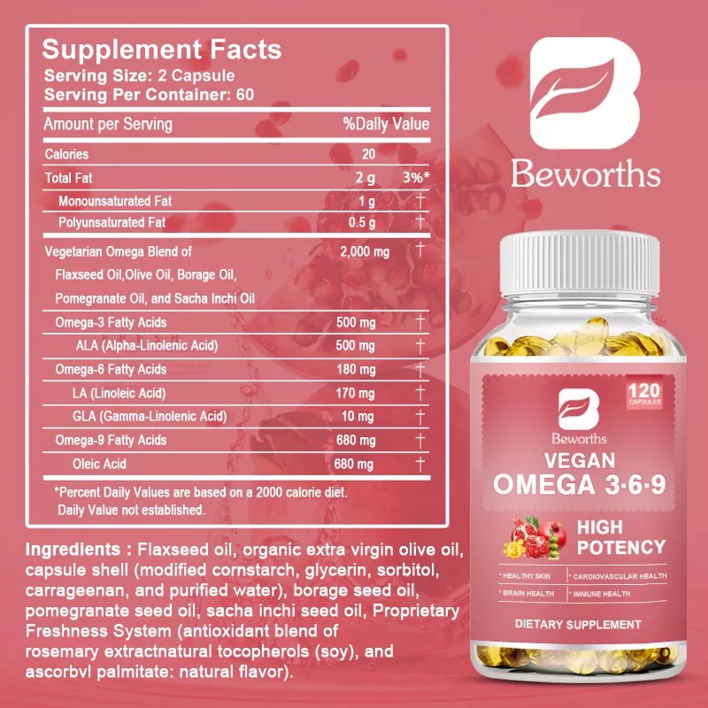 - Ingredients: Omega-3, Omega-3 -6 -9 Fatty Acids
