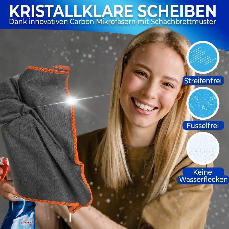 - 100% streak-free and lint-free – with the window cloths made of premium carbon microfibres, glass panes and smooth surfaces dry streak-free in no time at all - lint-free shine without wiping