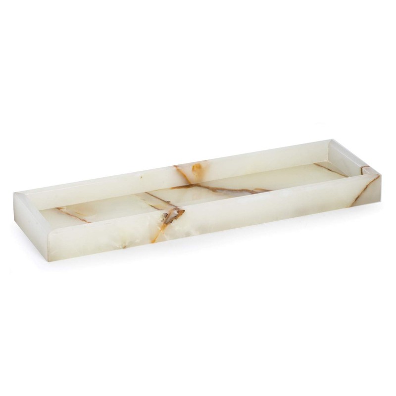 Bey-Berk International Green Onyx Marble Bath Tray, White & Tan