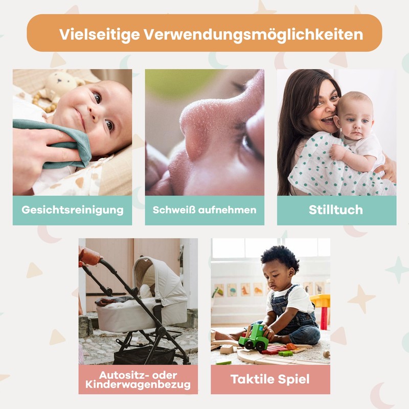 - 😊 Safe comfort – Your baby's happiness is our top priority. With our muslin squares, you offer your little one a nest of comfort and safety while ensuring a gentle touch at all times.
