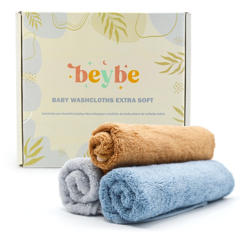 Beybe Pack of 3 Bamboo Wash Cloths Baby Soft 50 x 25 cm - Baby Wash Cloths Newborn - Ideal for Babies, Toddlers and Nursery