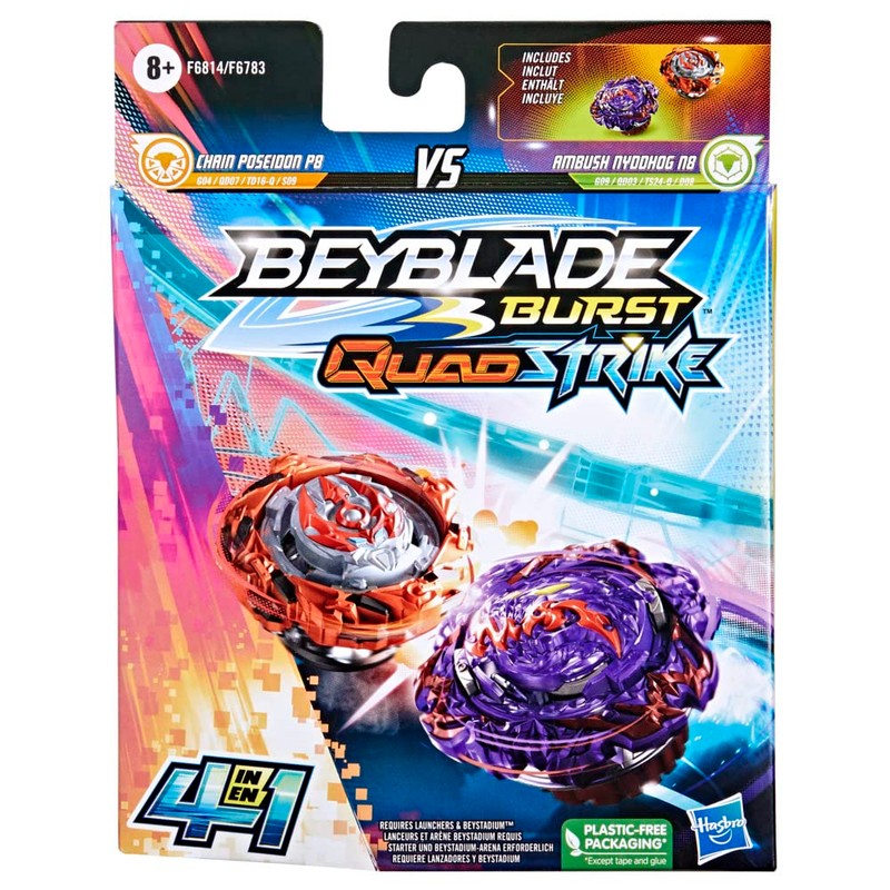 Beyblade Burst QuadStrike Dual Pack, Ambush Nyddhog N8 & Chain Poseidon P8 Competition Spinning Top