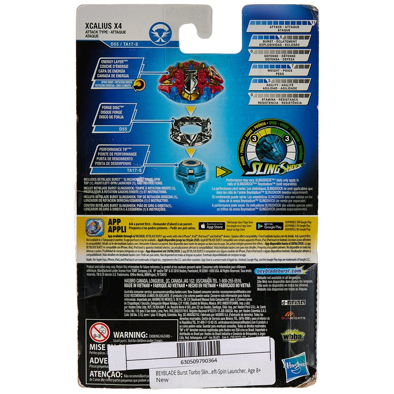 - Beyblade burst competitive battling top: includes right-spin Beyblade burst turbo sling shock xcalius x4 D55 ta17-s attack Type top and slingshot left/right-spin launcher.