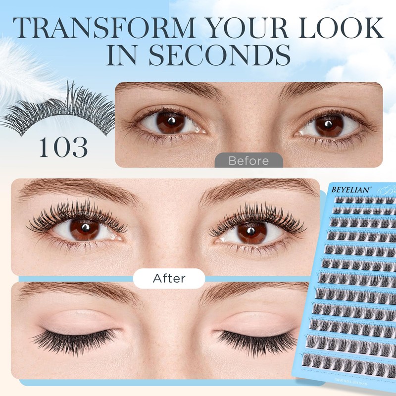 - Seamless Fit, No Collapse - Say goodbye to lash collapse. BEYELIAN cluster lashes sit seamlessly on your lash line—no poking, no drooping. Ideal for weddings, parties, workouts, and long wear