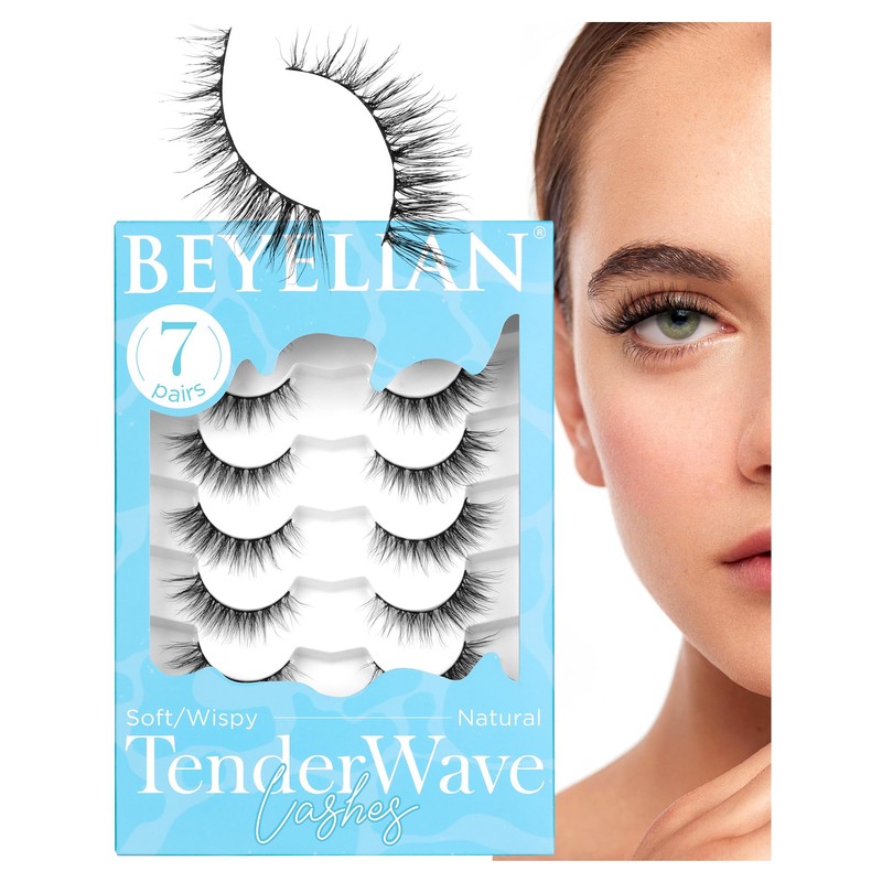 BEYELIAN False Eyelashes Natural Look 7-14mm Cat Eye Wispy Lashes Mink Soft and Lightweight 3D Volume Faux Mink Lashes Wispy, Reusable, Easy to Apply 7 Pairs (7P-RSM-25)