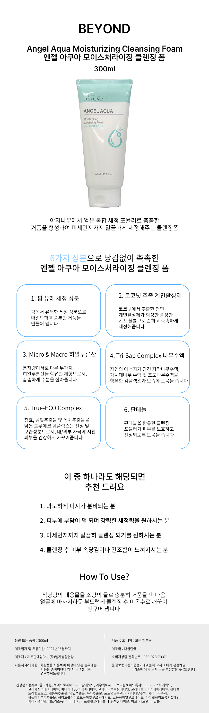 Beyond Angel Aqua Moisturizing Cleansing Foam 300ml / 비욘드 엔젤 아쿠아 모이스처라이징 클렌징 폼 300ml