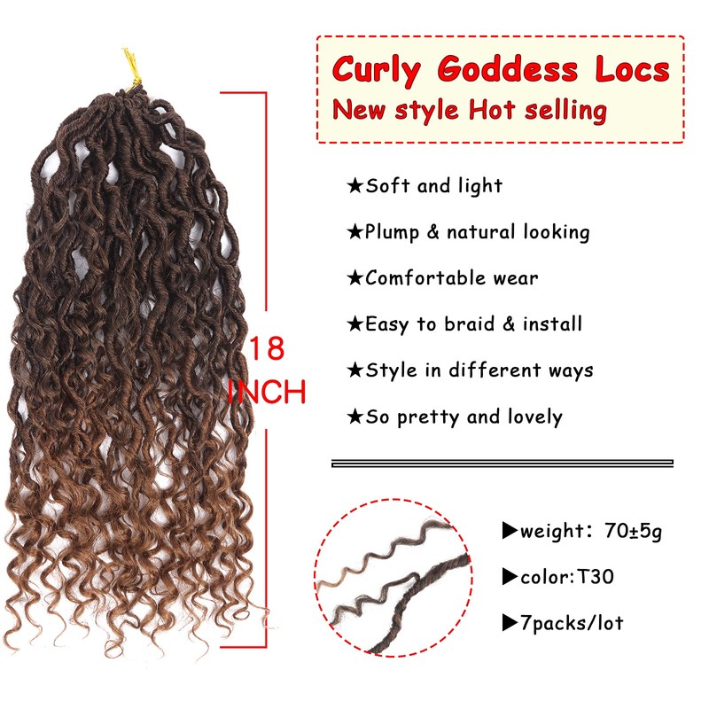 Beyond Beauty Goddess Locs Crochet Hair Pre Looped Curly Goddess Faux Locs Crochet Hair for Black Women Wavy Crochet with Curly Hair in the Middle and Ends Synthetic (7 Packs-18 Inches, T30)