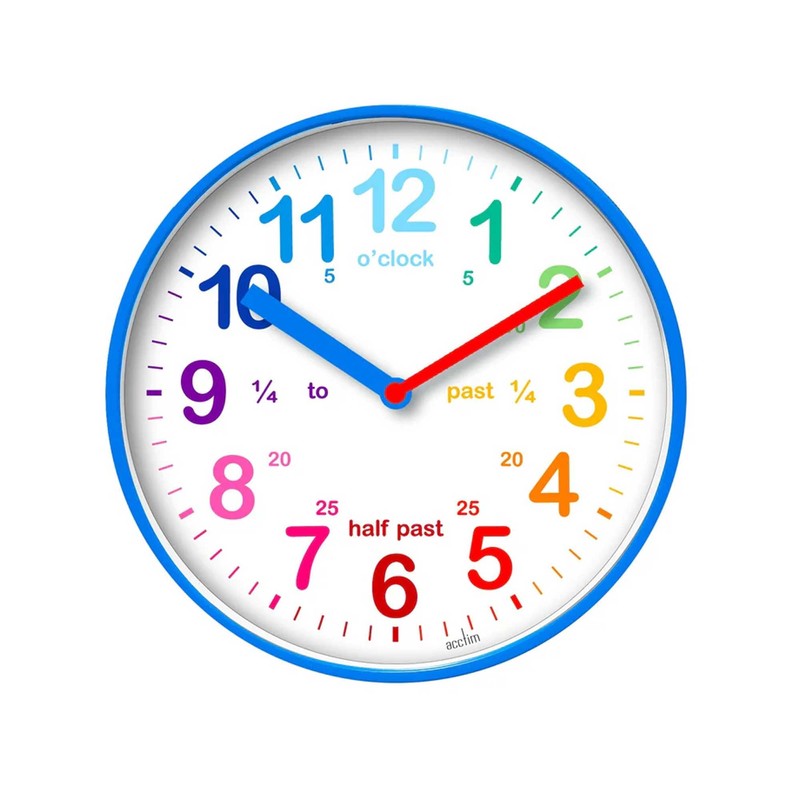 Beyond Happy Educational Kids Wall Clock - Colourful Silent Clock For Playroom and Bedroom (Blue Case)