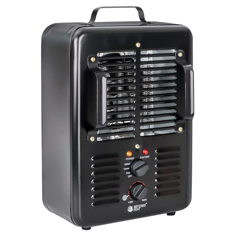 BEYOND HEAT Milkhouse Space Heater, 1300W/1500W Electric Heater with Thermostat, 3 Heat Settings, Safe and Quiet Heater for Garage Workshop Warehouse, Black