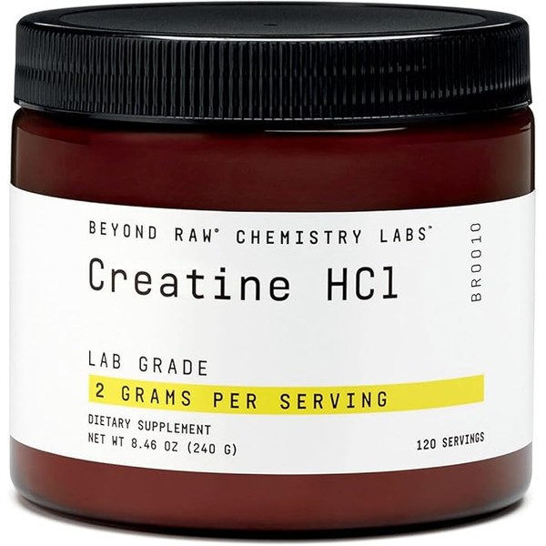 - ULTRA CONCENTRATED CREATINE: Low dose and ultra-concentrated, BEYOND RAW Chemistry Labs Creatine HCl provides 2.6 times more creatine per serving than the leading competitor.