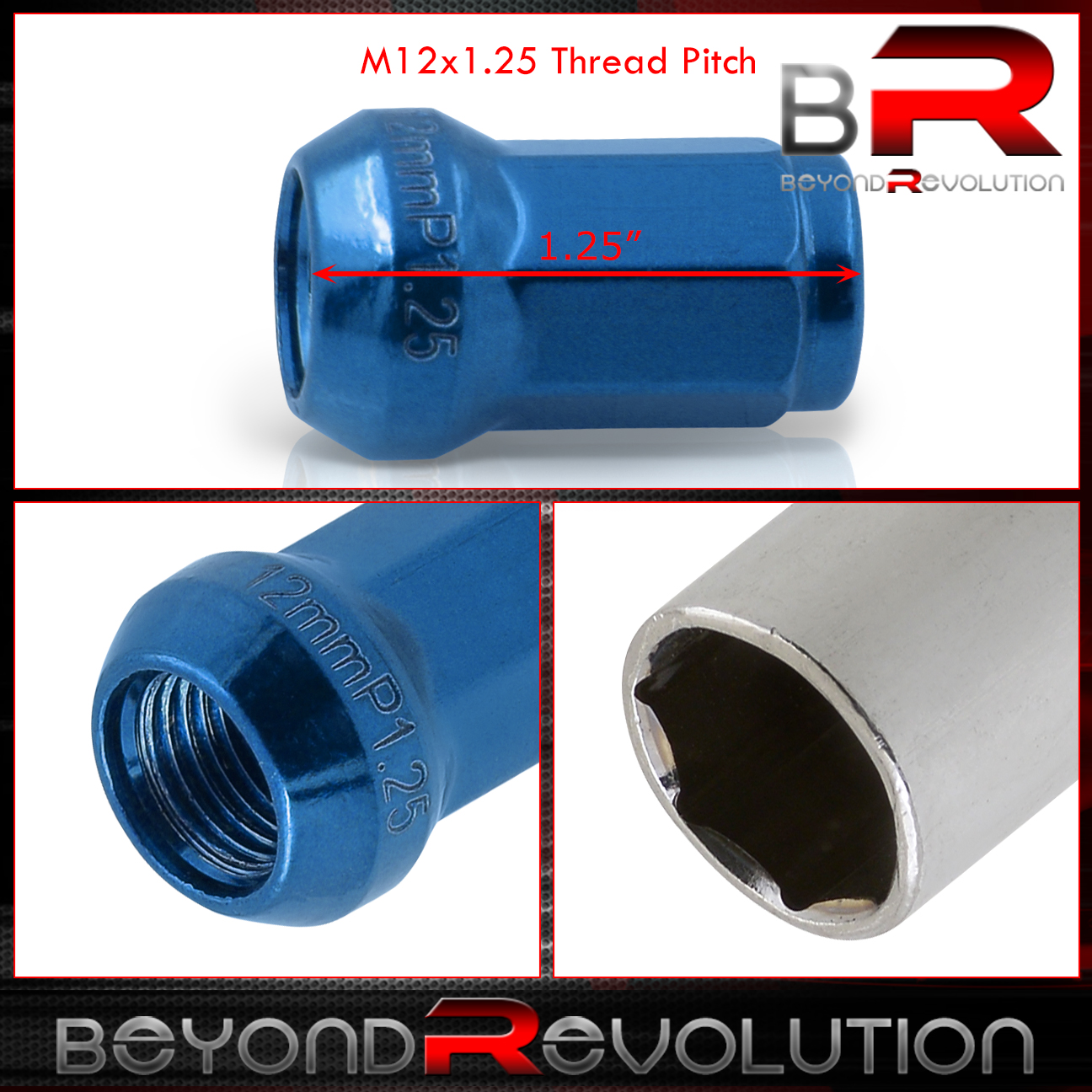 Beyond Revolution For 240SX 180SX M12X1.25mm Blue Short Closed End Acorn Steel Lug Nuts Set of 20