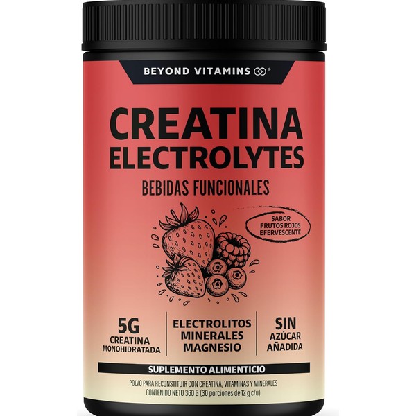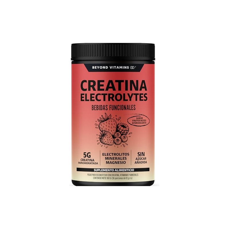 BEYOND VITAMINS Creatina Monohidratada con Electrolitos y Ciclodextrina para Mejor Absorción e Hidratación | Bebida Efervescente con Vitaminas y Minerales | Sin Azúcar | 30 Porciones (Frutos Rojos)