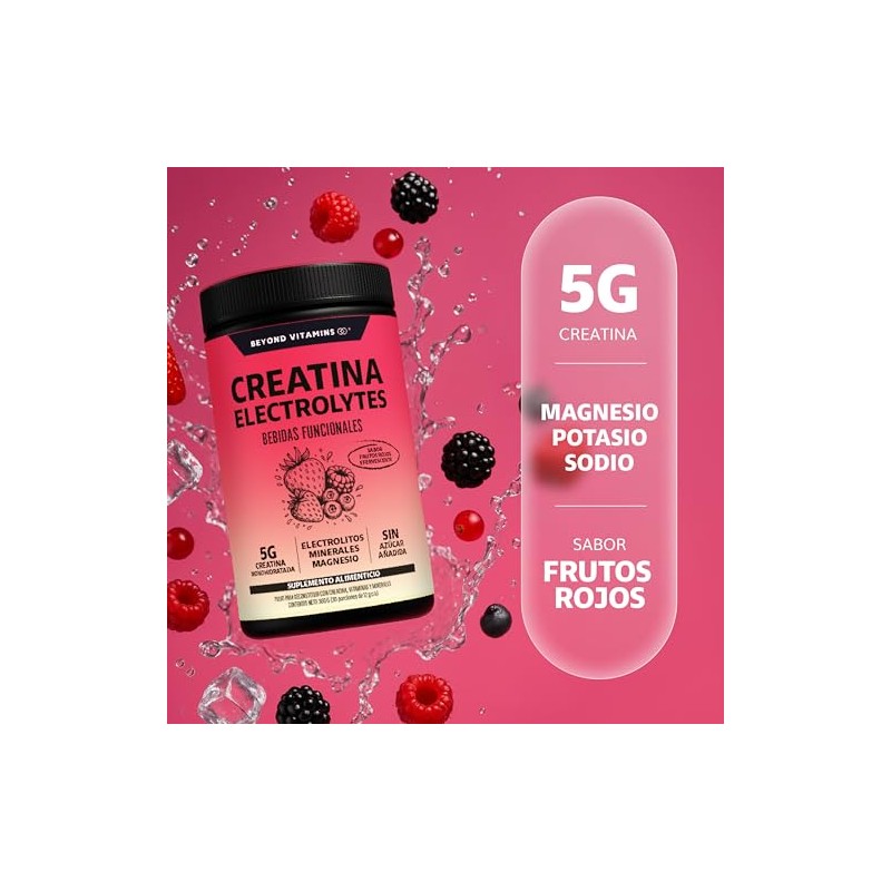 Prepárate para una experiencia efervescente que transformará tus entrenamientos y te llevará más allá de tus límites. BEYOND VITAMINS Creatina Monohidratada no es la típica creatina en polvo; es una sinfonía de ciencia y sabor, diseñada para optimizar tu rendimiento y revitalizar tu cuerpo desde el interior. Imagina un torbellino de frutos rojos 🍒🍇 explotando en tu paladar, una bebida refrescante y vigorizante que despierta tus sentidos y te impulsa hacia tus metas. Olvídate de las bebidas azucaradas y sosas; con nuestra fórmula sin azúcar añadida, disfrutarás de un placer culpable sin remordimientos. 😎