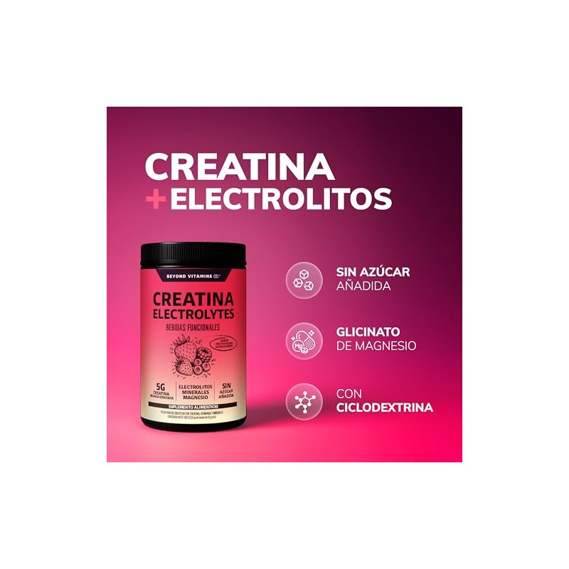 BEYOND VITAMINS Creatina Monohidratada con Electrolitos y Ciclodextrina para ...