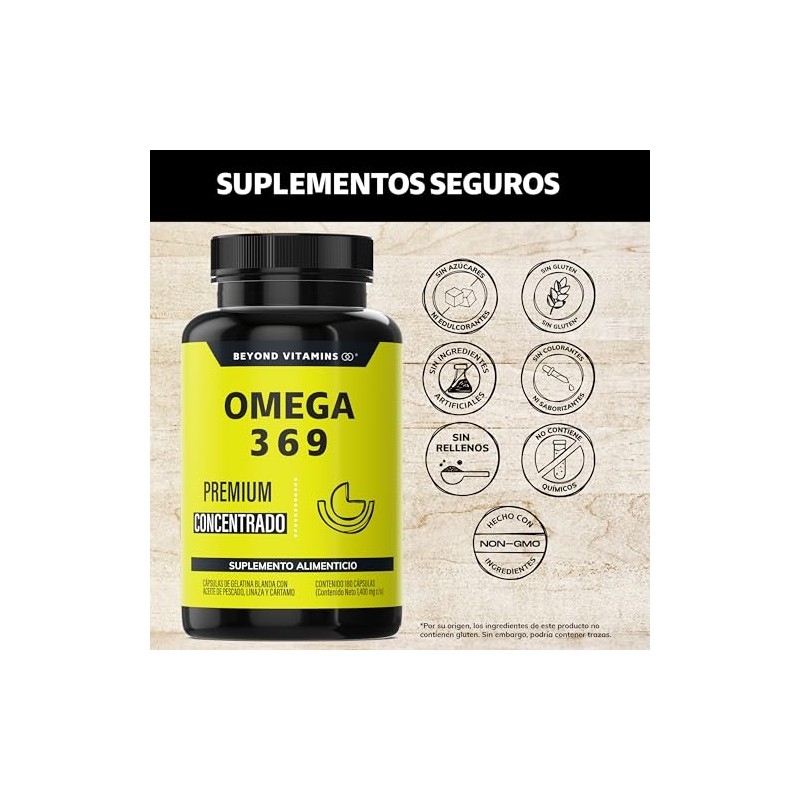 BEYOND VITAMINS - Beyond Vitamins | Omega 3 6 9 con contenido excepcionalmente alto de Omega 3 (DHA y EPA), Ácido Alfa Linoléico y Omega 6 (180 Caps). ⭐ Calidad premium certificada con excelentes reseñas. Tecnología avanzada y rendimiento superior. 💎 Calidad superior certificada. Ideal para quienes buscan lo mejor en calidad y estilo. Producto auténtico con satisfacción total asegurada. ¡No te quedes sin el tuyo y aprovecha esta oportunidad única!