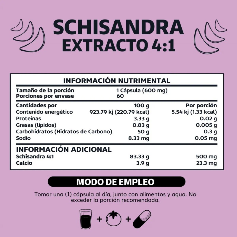 - Extracto de Schisandra 4:1: Potencia Natural Concentrada La schisandra es una planta adaptógena conocida por sus múltiples beneficios, y nuestro extracto 4:1 garantiza una concentración potente. Con 500 mg por cápsula, te ofrecemos una forma fácil y efectiva de aprovechar las propiedades de esta planta tradicional en tu día a día. Fórmula Vegana y Natural Este suplemento está elaborado con cápsulas de celulosa vegetal, lo que lo hace 100% vegano y apto para cualquier dieta. Libre de aditivos y conservantes artificiales, el Extracto de Schisandra de Beyond Vitamins es una opción natural y sostenible que se adapta a cualquier estilo de vida. Fácil de Integrar en Tu Rutina Diaria Con una cápsula diaria, nuestro extracto de schisandra es fácil de incorporar en tu rutina. Las cápsulas son sencillas de tomar y están perfectamente dosificadas, haciendo de Beyond Vitamins Extracto de Schisandra un complemento práctico y conveniente para disfrutar de sus beneficios sin complicaciones. Más Que un Suplemento, Una Experiencia Beyond Vitamins es más que un suplemento; es una experiencia de bienestar. Desde la cuidadosa formulación hasta la facilidad de uso, este producto está diseñado para ofrecerte una manera eficiente y cómoda de mejorar tu rutina diaria, aportando lo mejor de la naturaleza a tu vida. LOS SUPLEMENTOS BEYOND VITAMINS SON: