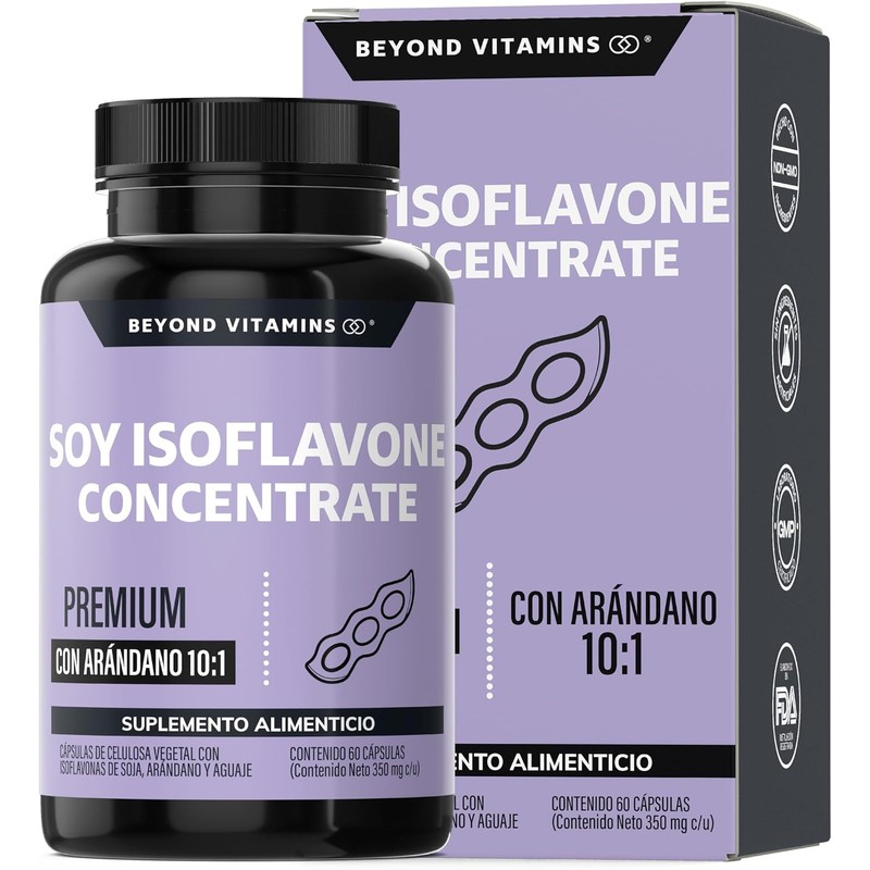 Beyond Vitamins | Soy Isoflavone Concentrate Premium | Concentrado de Isoflavonas de Soya 40% | con Arándano 10:1 y Aguaje| Cápsulas vegetales VCaps - 60 cápsulas