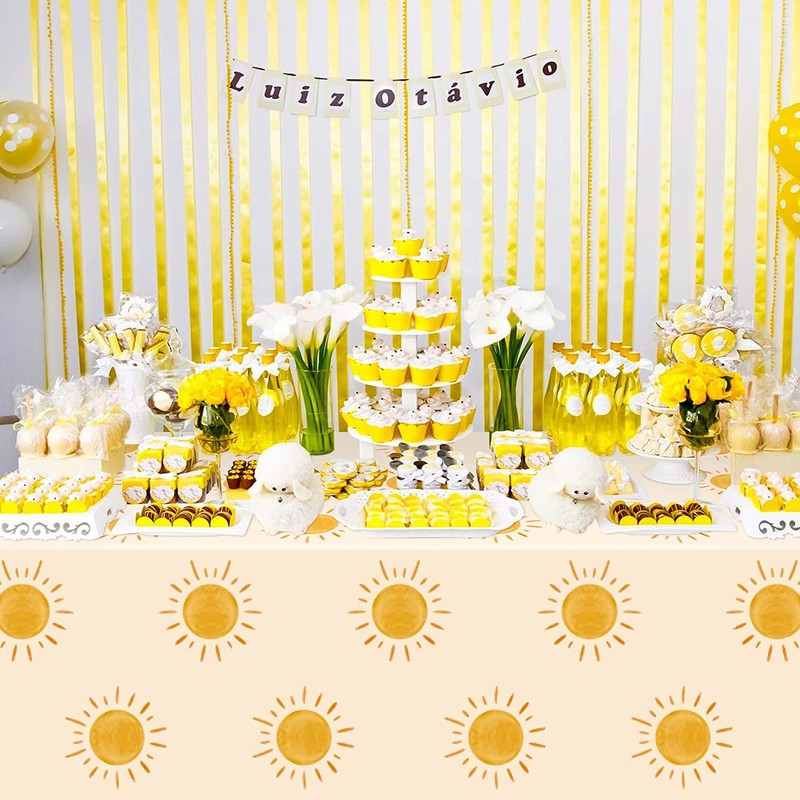 - 1.[Boho Sunshine Design] Add a splash of sunshine to your next party with our boho sun tablecloths! These colourful and attractive patterns will create a warm and inviting atmosphere, perfect for occasions like a Sunshine Party or First Trip Around the Sun Party.